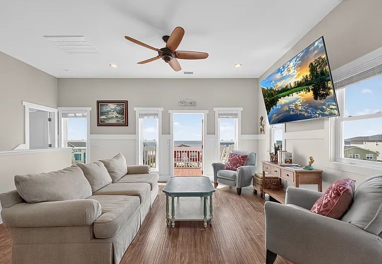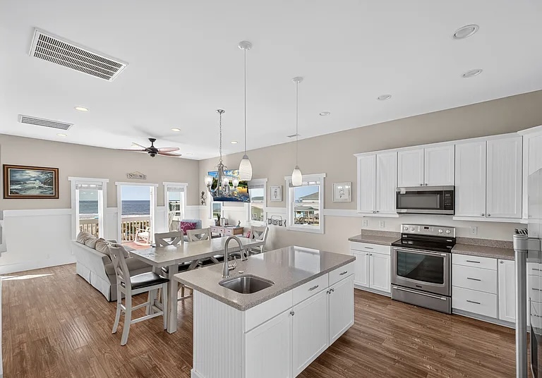 Isle Always Luv View comfortably sleeps up to 12 guests, making it perfect for family gatherings or vacations with friends. The home features a thoughtfully designed reverse floor plan. Take the stairs or elevator up where You’ll find the spacious kitchen, dining, and living areas located on the top floor, where breathtaking ocean views await!