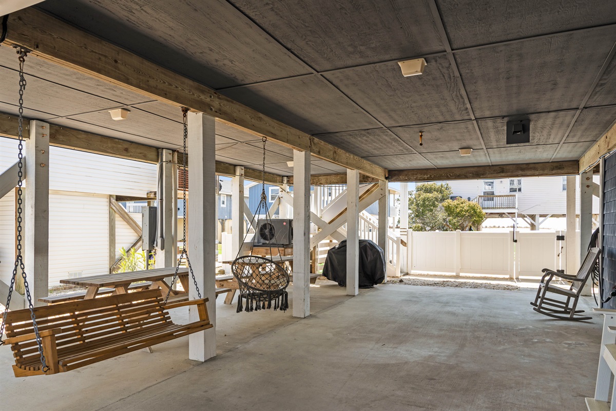 The garage provides ample storage for beach gear, including chairs, umbrellas, cornhole board and accessories, so you can easily make the most of your sun-soaked beach days.