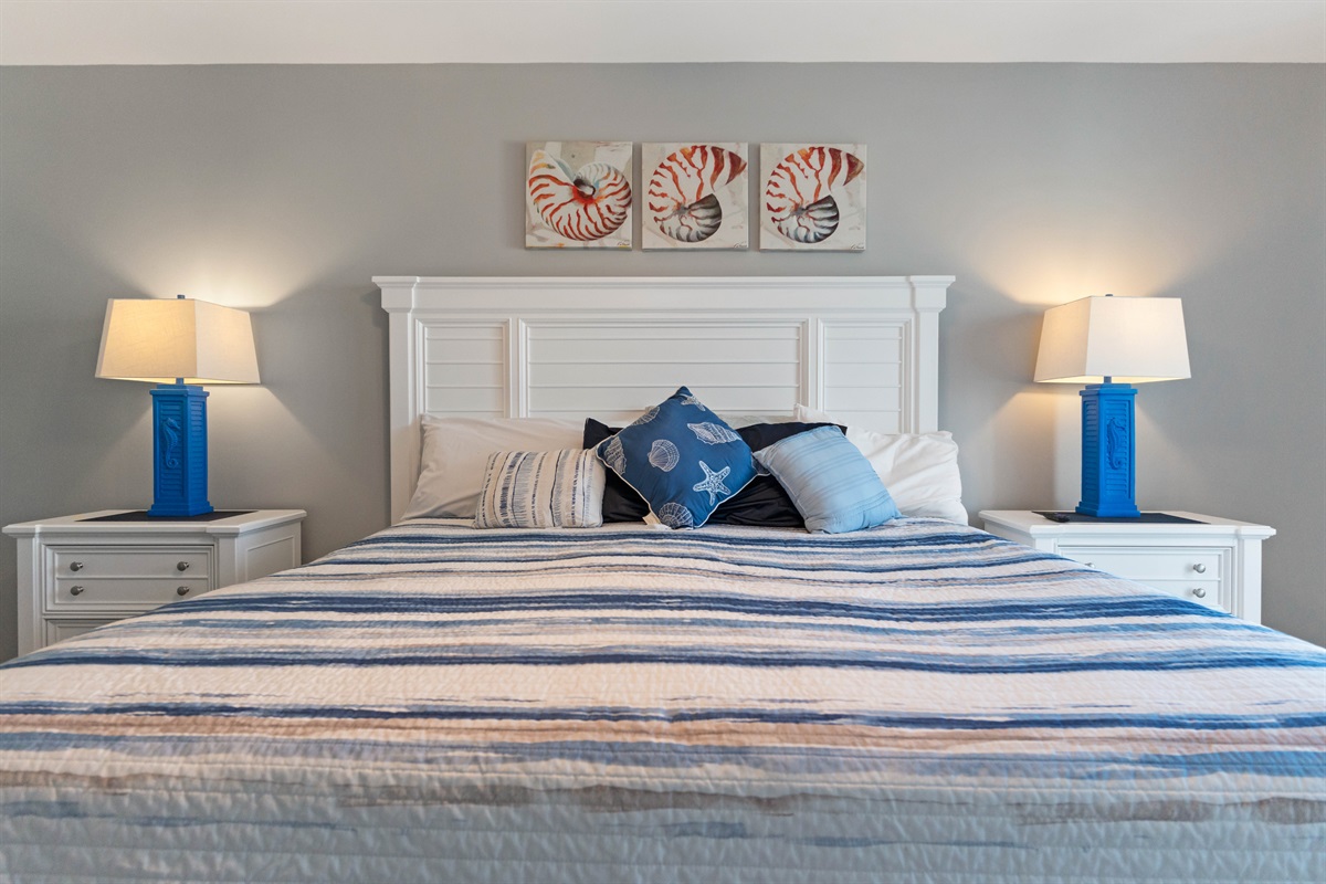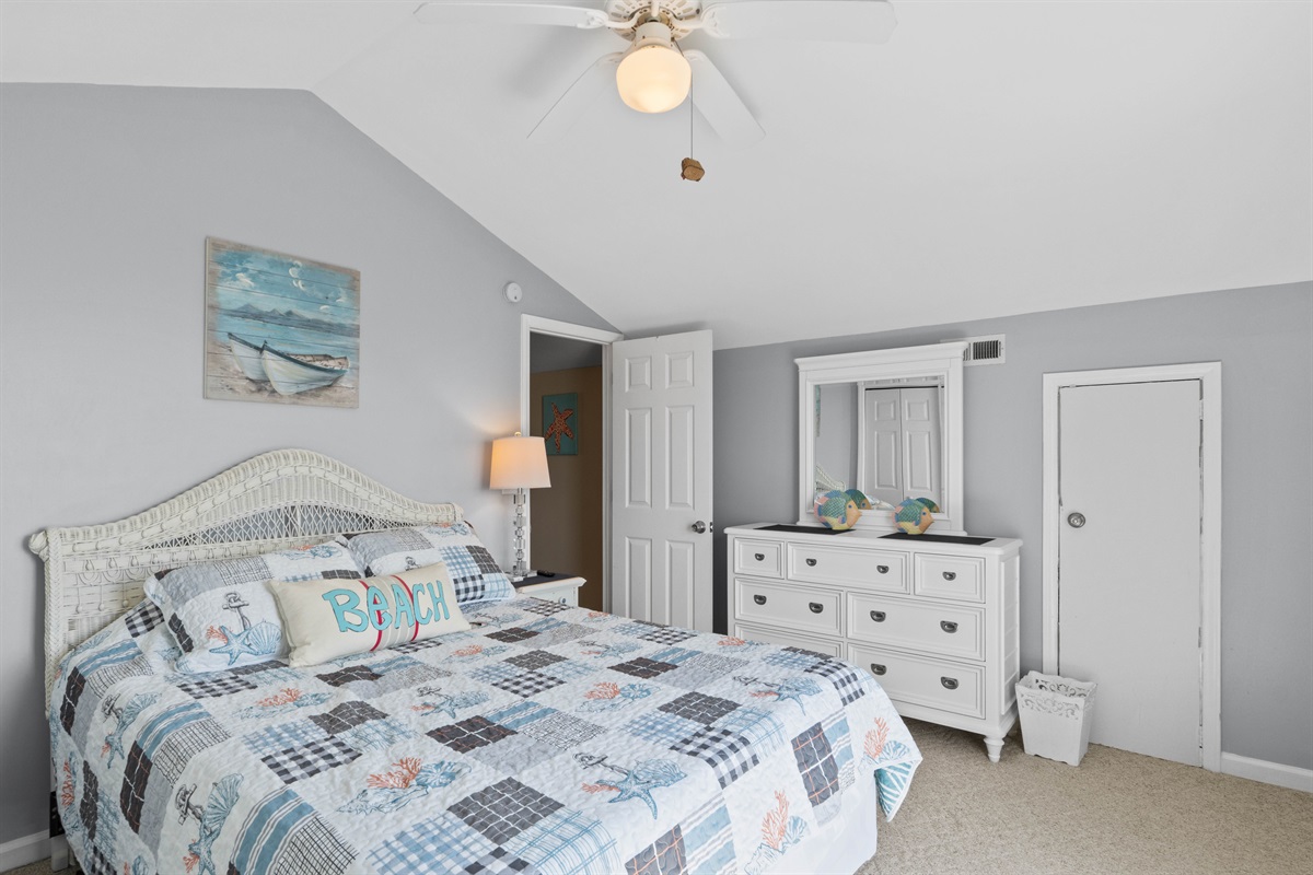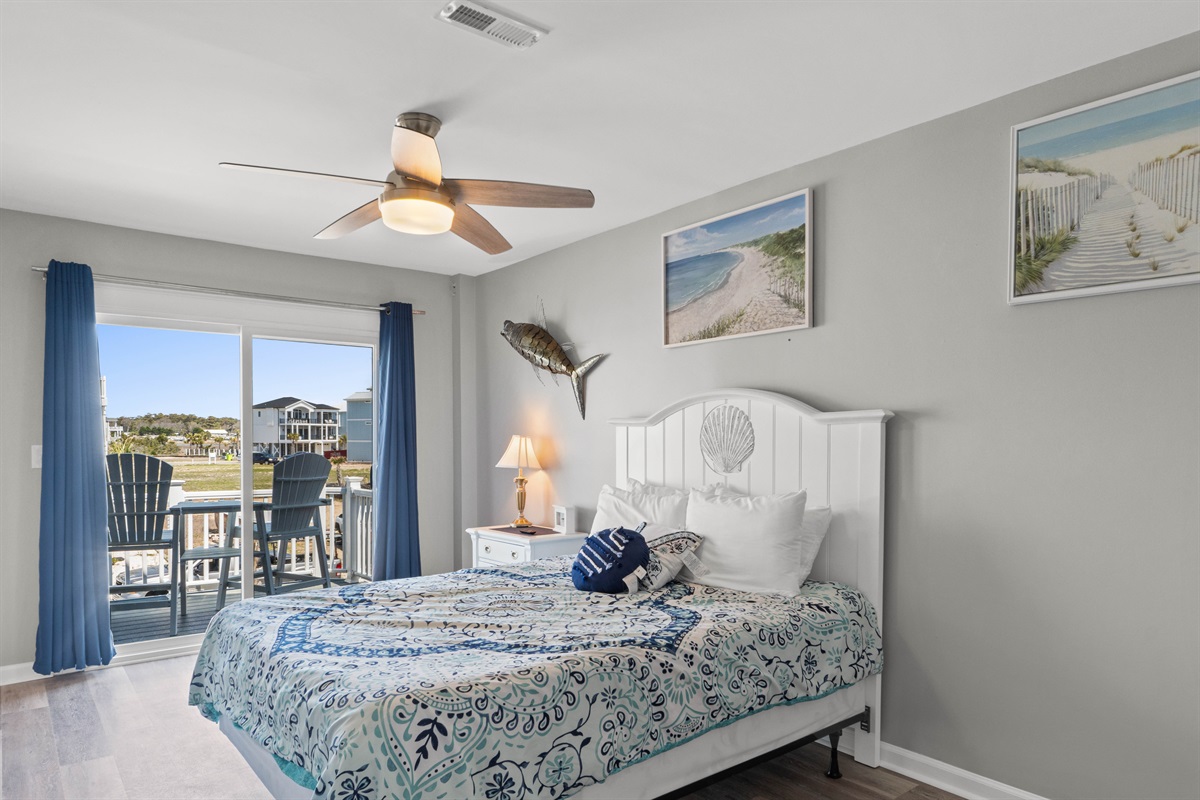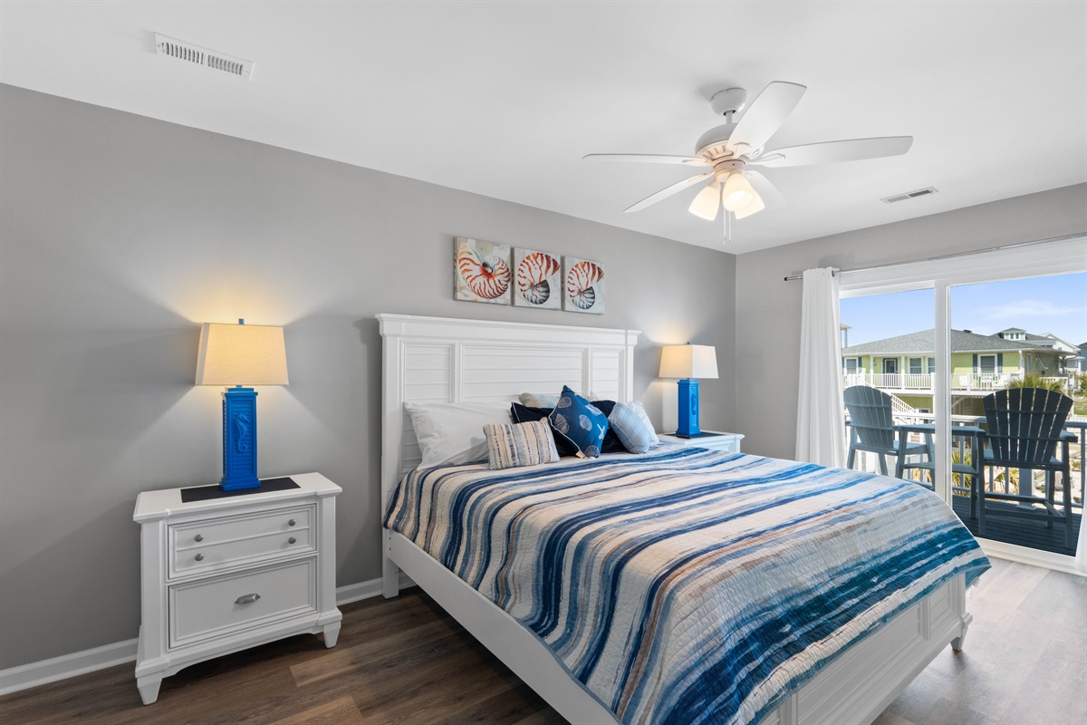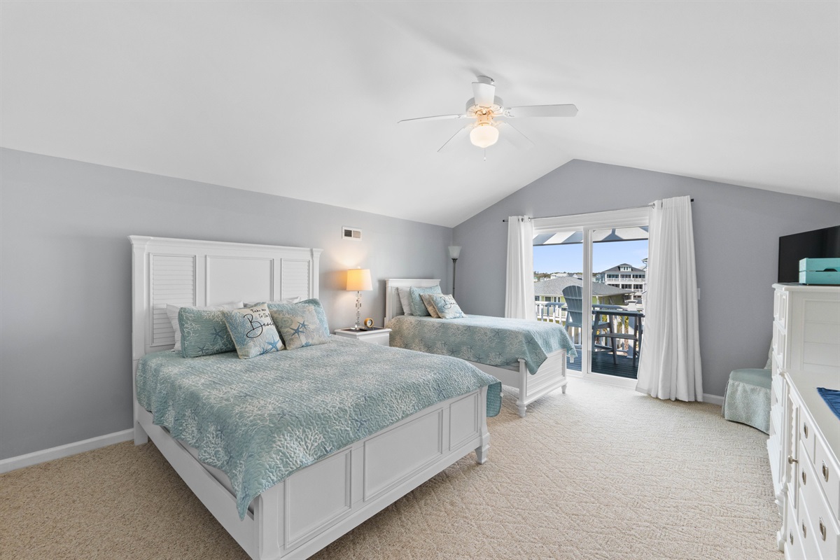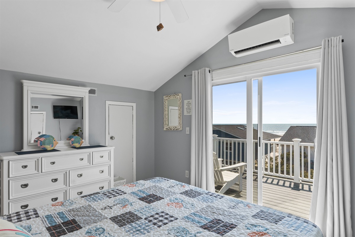 - Bedroom #4: A queen-sized bed with a sliding door to a deck offering ocean views.