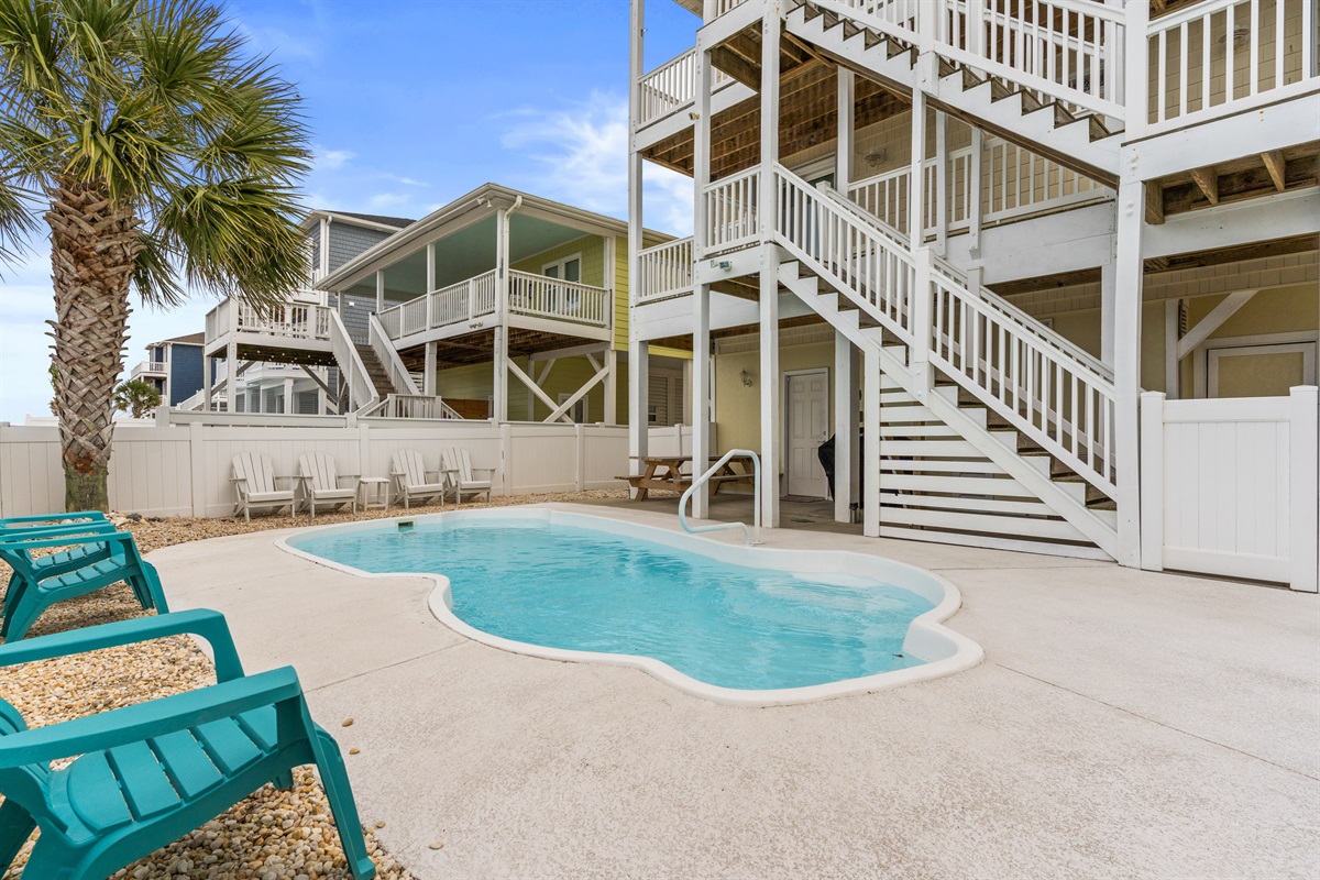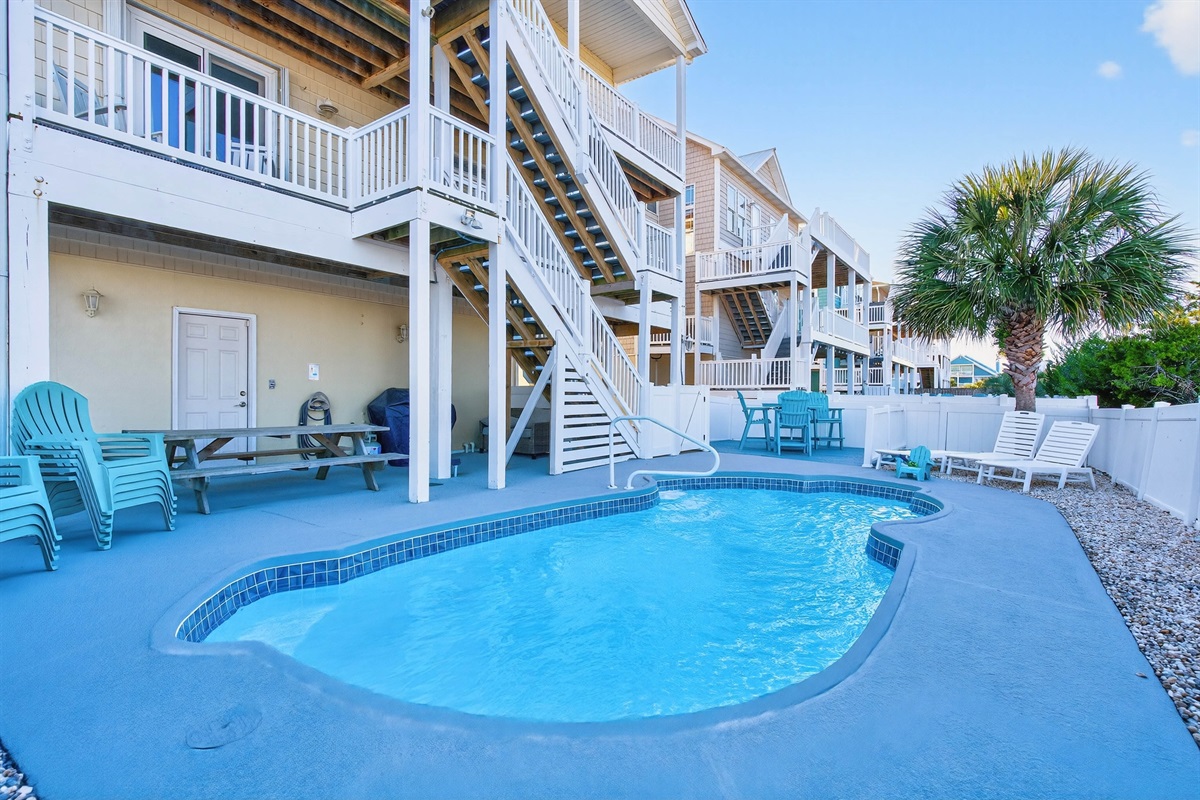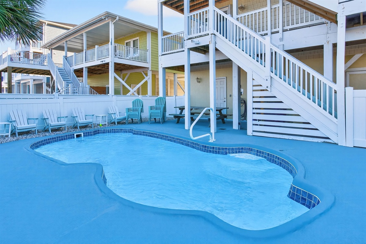 Escape to luxury and relaxation at Shore 2 Please, a stunning 5-bedroom, 5.5-bathroom beach home located on the tranquil East End of Ocean Isle Beach. Nestled on a peaceful dead-end street just steps away from public beach access, this beautiful retreat is ideal for families seeking both comfort and adventure.