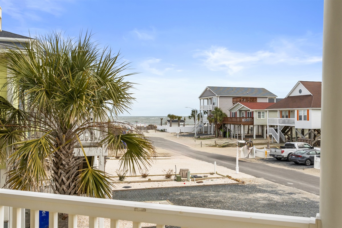 On the top level, unwind in the master en-suite Bedroom #1, which features a king-size bed, private bathroom with a double vanity, standalone shower, and a separate jetted bathtub. Enjoy your morning coffee on the front porch balcony while soaking in picturesque ocean views.