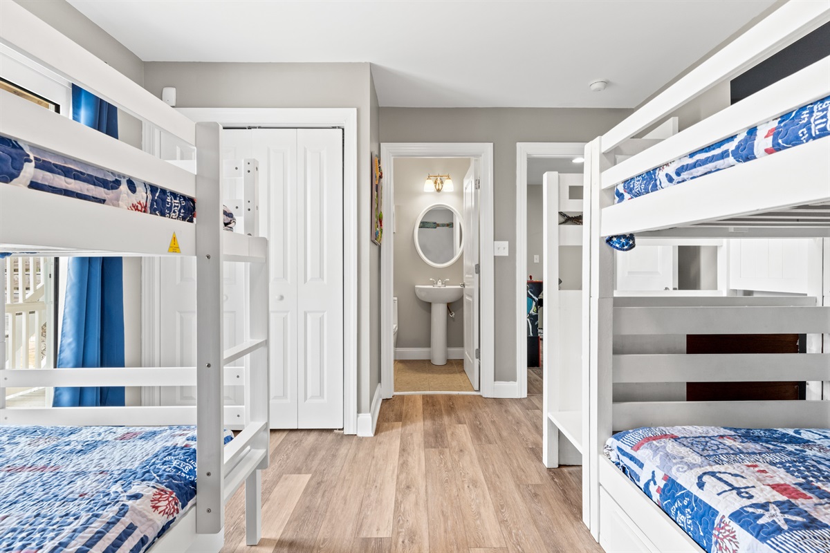 - Bedroom #5: Perfect for the kids, this room features two bunk beds (with a trundle) accommodating up to five guests, plus a private bathroom with a walk-in shower.