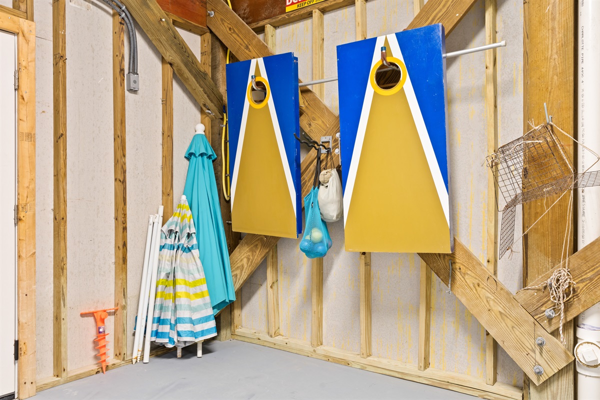 The garage provides ample storage for beach gear, including chairs, umbrellas, cornhole board and accessories, so you can easily make the most of your sun-soaked beach days.