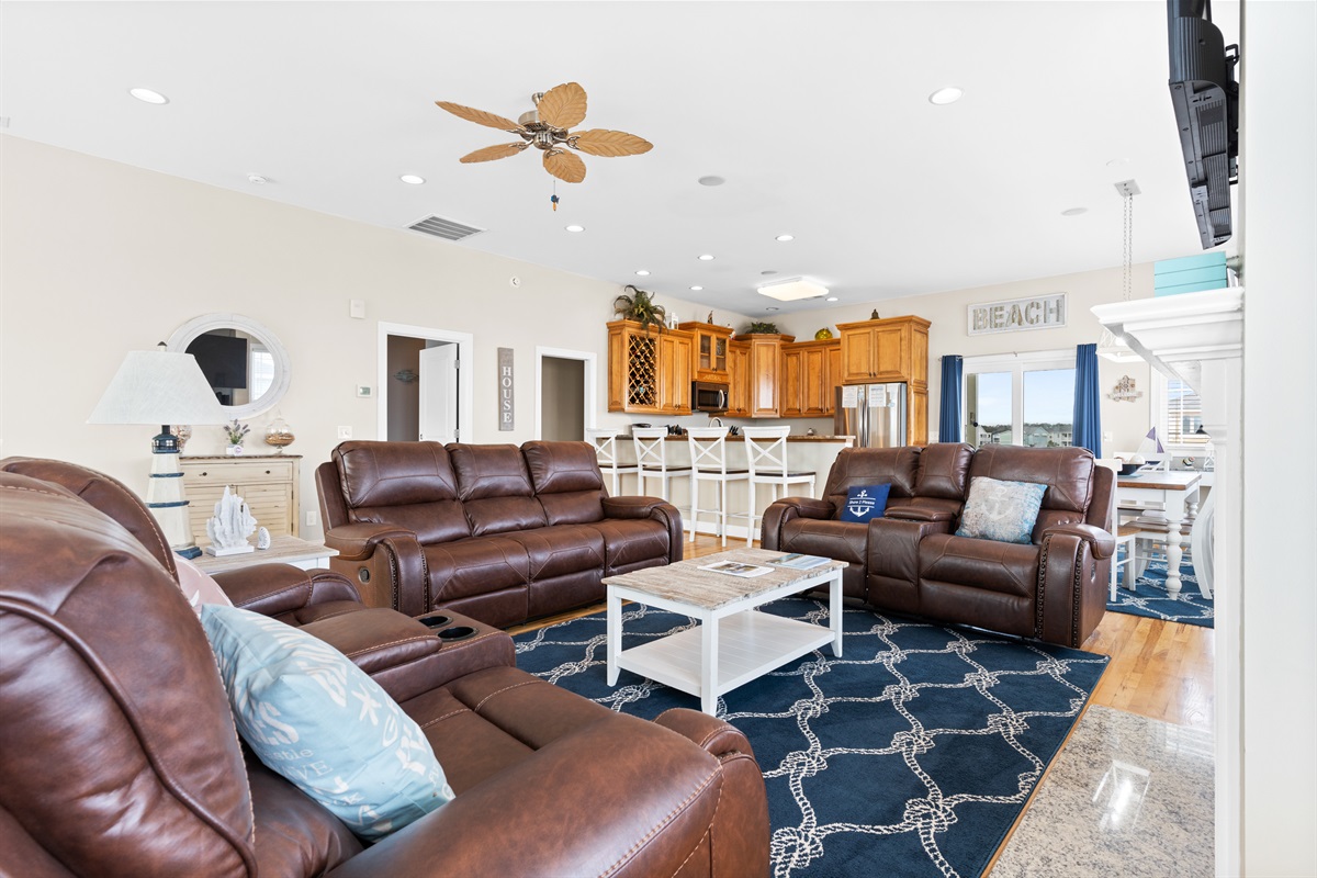 Shore 2 Please comfortably sleeps up to 13 guests, making it perfect for family gatherings or vacations with friends. The home features a thoughtfully designed reverse floor plan. You’ll find the spacious kitchen, dining, and living areas located on the top floor, where breathtaking ocean views await!
